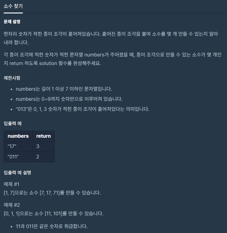 // 소수면 해당 숫자를 문자열로 바꾸고 배열로 변환