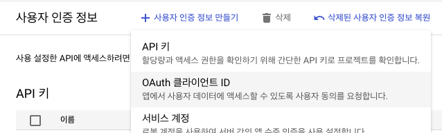 OAuth 클라이언트 ID 생성
